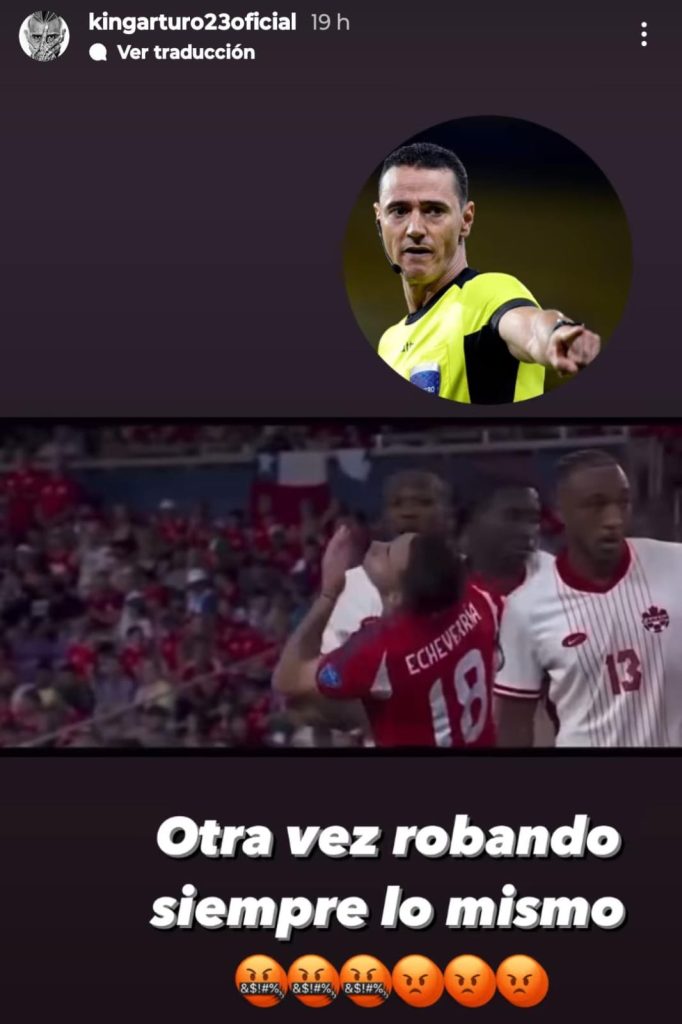 "Otra vez robando, siempre lo mismo", publicó en su cuenta de Instagram, escrito acompañado de una imagen del árbitro y el video donde se puede apreciar con claridad el golpe de Bombito a 'Eche', además de unos sugerentes emojis que reflejaban la rabia del 'rey' y del resto de los televidentes en nuestro país.